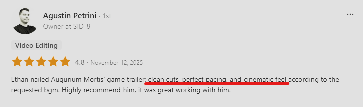 Experienced video editor specializing in gaming trailers and videos. Let me bring your gaming content to life.